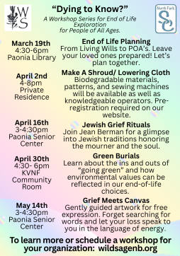 This Workshop is part of a longer workshop series sponsored by Wild Sage Natural Burials and The North Fork Senior Connection.