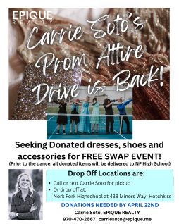 Prom Attire Drive - gathering dresses, shoes, accessories, suits and tuxedos to donate to the North Fork High School