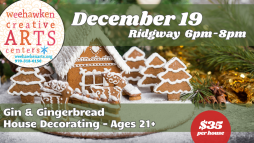 For years, Weehawken has presented the “Annual Gingerbread House Decorating Workshops.” Now it is time for the grown-ups to have some fun!