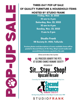 Pop-Up Home Furnishing Sale hosted by Second Chance Humane Society and Studio Frank