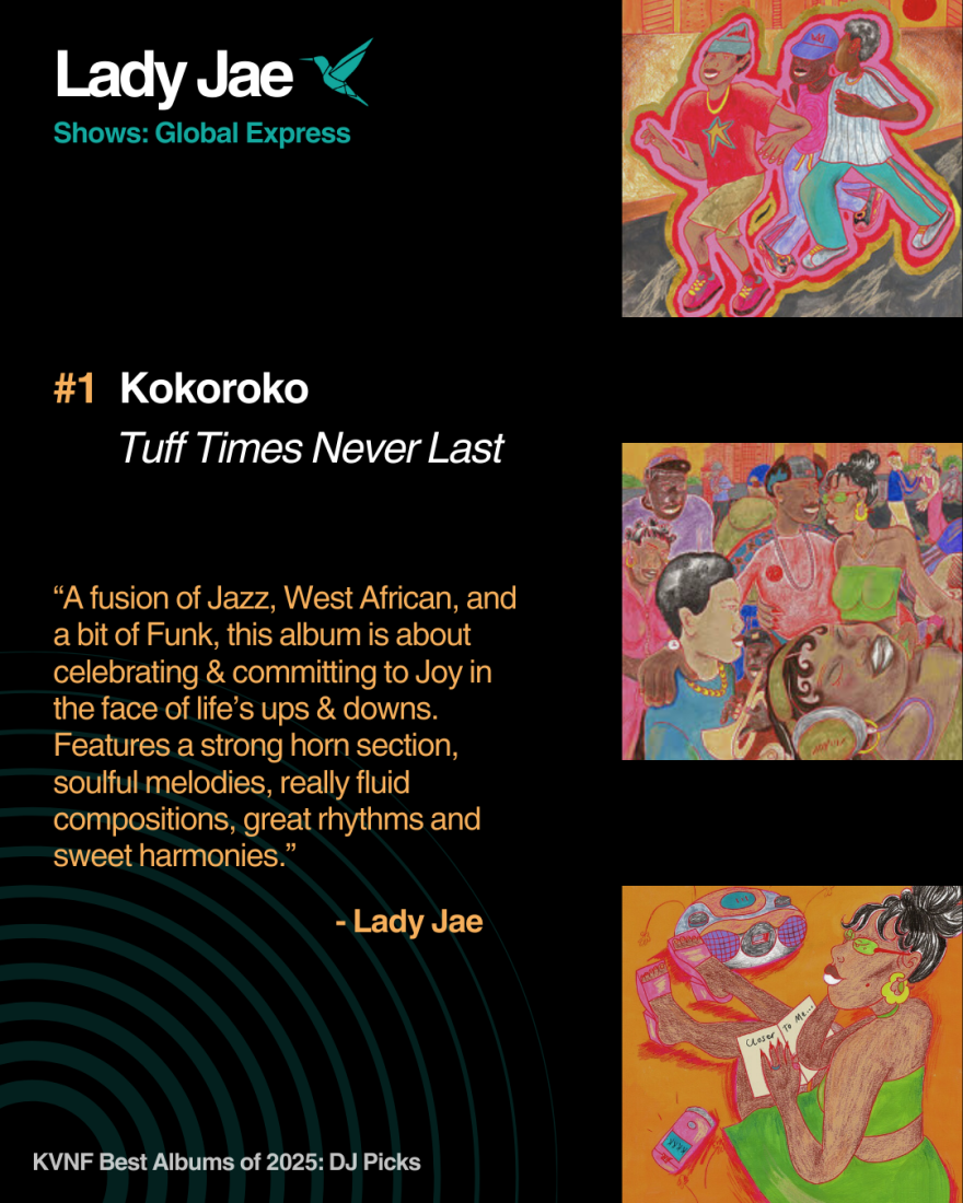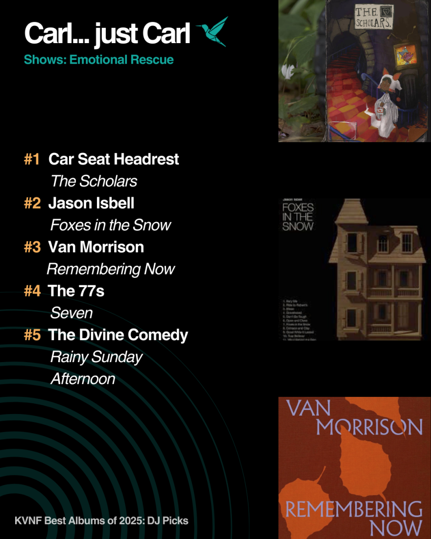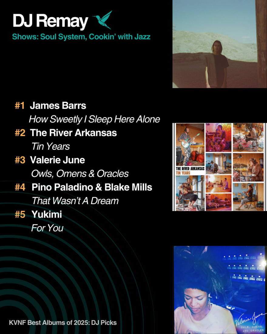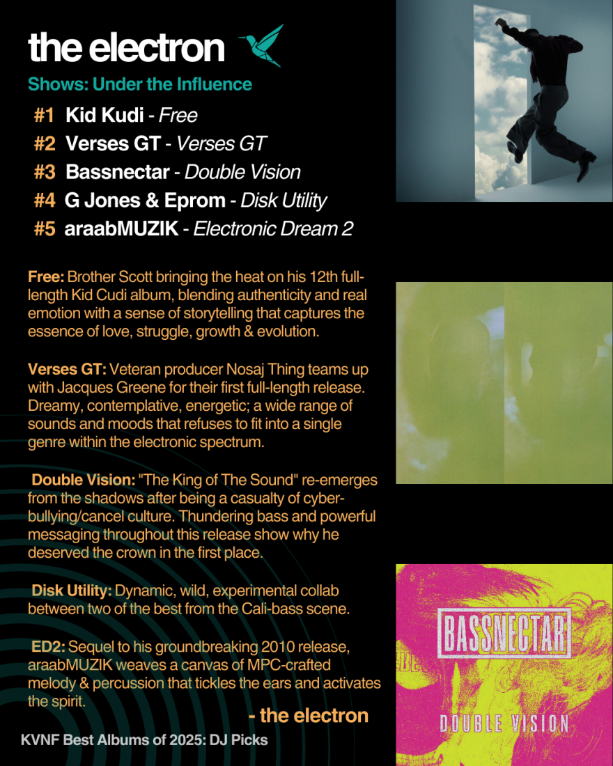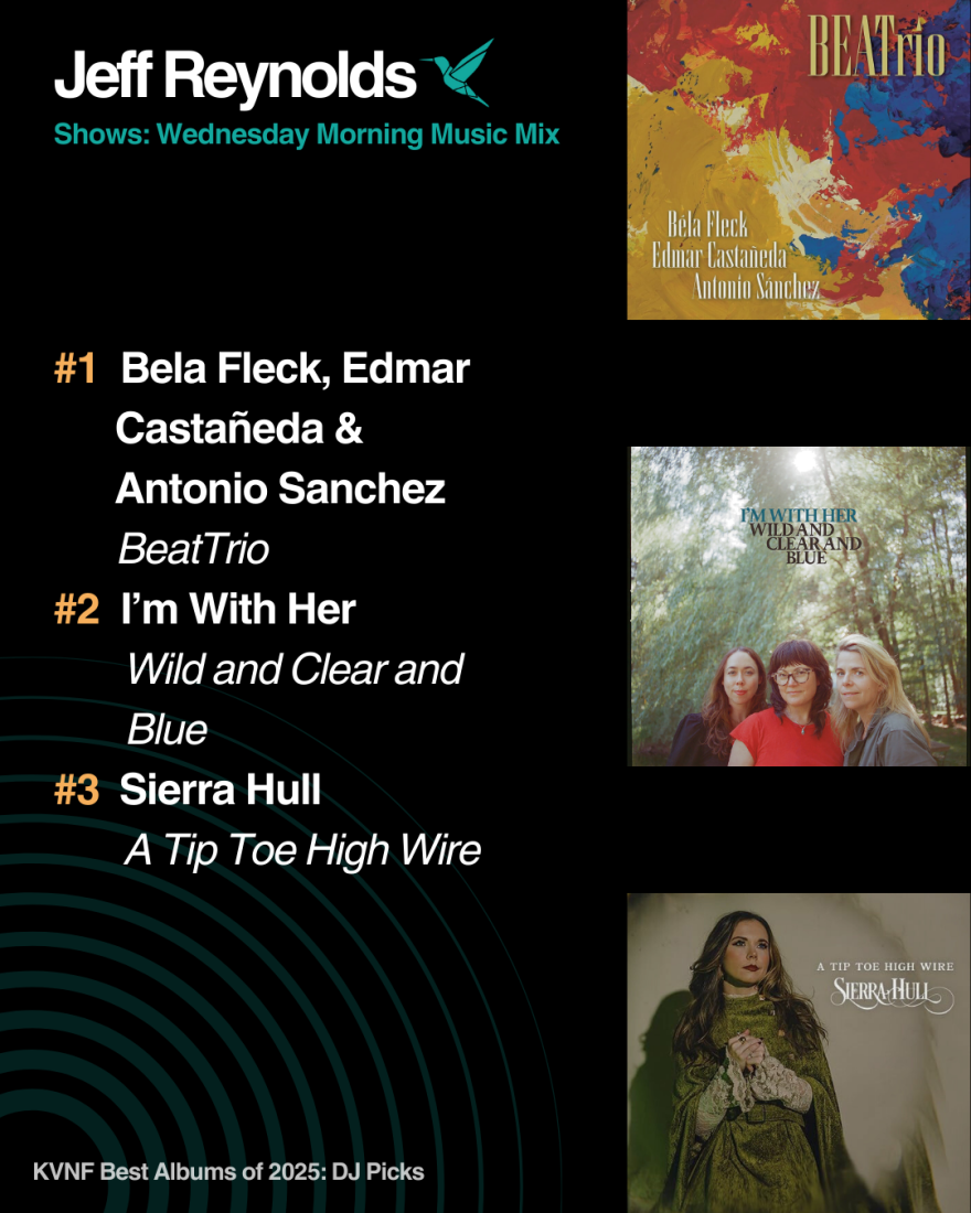MUSIC New Music KVNF updates their music library periodically spanning every genre. Here, you can dive into KVNF's latest music additions and check out KVNF's Top Spin of the week. Best Albums of 2025: DJ Picks KVNF - Mountain Grown Community Radio | By Andrea Castillo Published December 28, 2025 at 1:18 PM MST Facebook Twitter LinkedIn Email